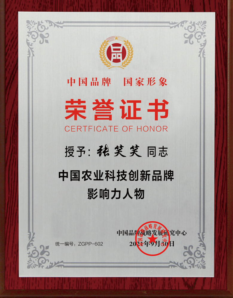 2021年10月15日,由中國品牌戰略發展研究中心等發布的“中國品牌榜”揭曉。針對企業“創新引領、綜合實力、市場認同、盈利能力、社會責任、用戶美譽”六個維度的結果性指標,對企業品牌創建能力進行評價。山東沃華農業科技股份有限公司榮獲“中國農業科技創新領軍品牌”榮譽證牌;總經理張笑笑榮獲“中國農業科技創新品牌影響力人物”榮譽稱號。