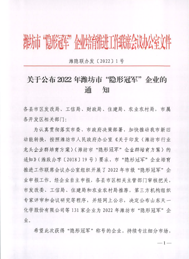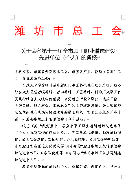 2022年12月19日,潍坊市总工会颁发了《关于命名第十一届全市职工职业道德建设先进单位(个人)的通报》,山东沃华荣获潍坊市职工职业道德建设先进单位荣誉称号。 山东沃华自创立以来,高度重视职工职业道德建设工作,积极践行社会主义核心价值观,通过开展系列精神文明创建活动,将党建引领、业务发展和文化建设相融合,切实提升了职工队伍思想道德素质和业务素质,成为助推企业高质量发展的强力引擎。 下一步,山东沃华将继续不忘初心使命,更好地发挥模范带头作用,坚定不移把党的目标任务落到实处,持续深化职工职业道德建设,始终做道德的践行者、精神的引领者、时代的奋斗者。