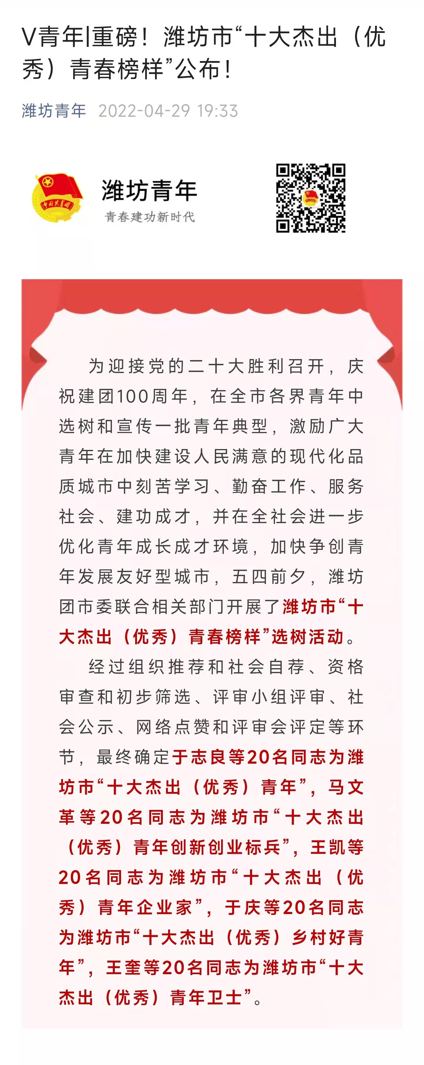 齐鲁网·闪电新闻4月25日讯 十年前,她正值青春时光,从海外归来,放弃高薪工作和舒适生活,倾心投入安丘现代农业产业发展之路,把青春播撒于土地,将人生与乡村“链接”,敢闯敢为,以巾帼不让须眉的豪情和努力,不断创新突破,为安丘现代农业发展插上科技的翅膀,展现了新时代女性风采,她就是“85后”年轻女企业家张笑笑。 作为山东沃华农业科技股份有限公司总经理,现集山东省青年企业家协会理事,潍坊市女企协会员,安丘市青年企业家协会会长,潍坊市青春担当好青年,全国巾帼建功标兵,山东省最美乡村女致富带头人,鸢都产业领军人才等荣誉于一身。张笑笑直言,在农业发展道路上更觉任重道远。